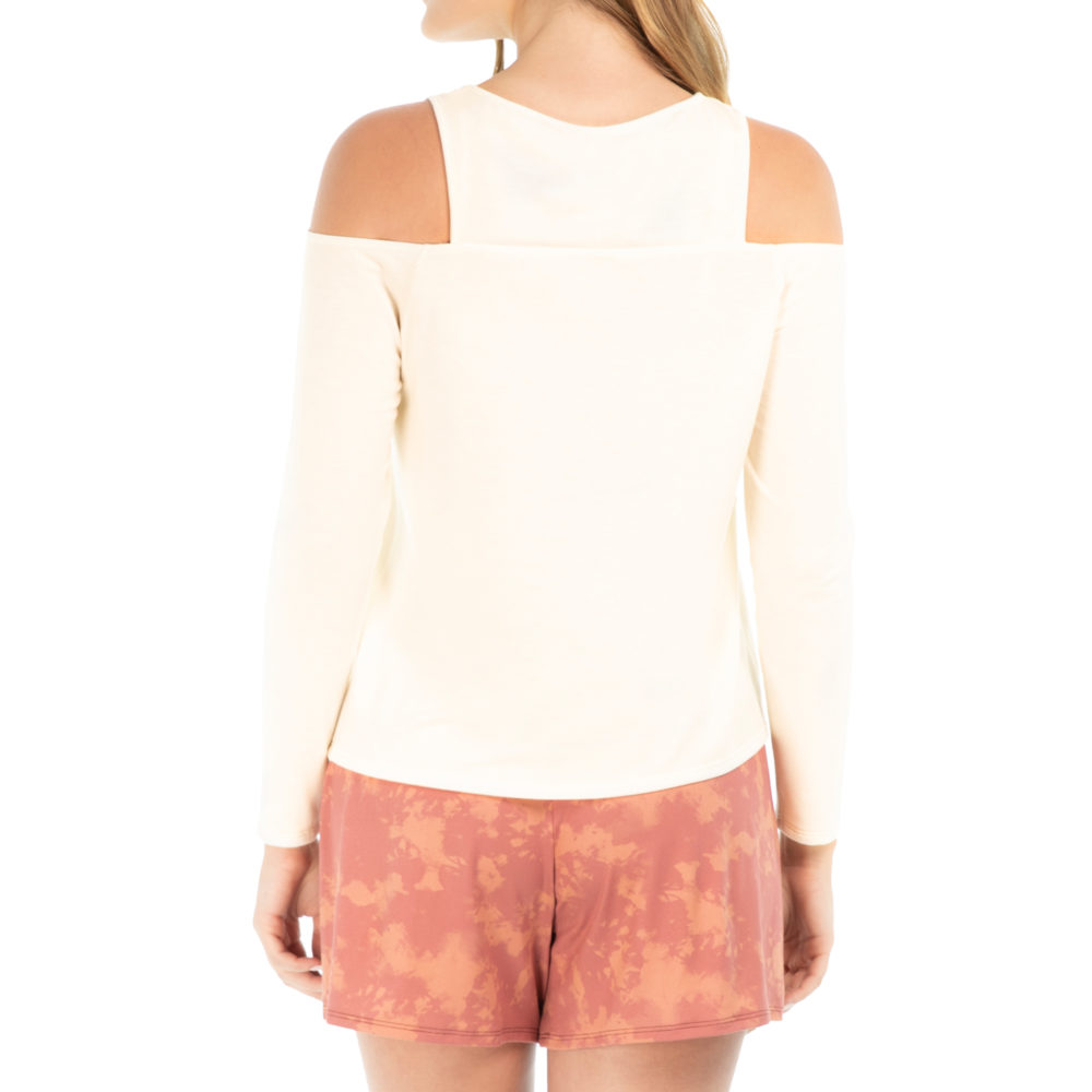 SET PIJAMA, PLAYERA MANGA LARGA CON CORTE EN HOMBRO, SHORT ESTAMPADO.