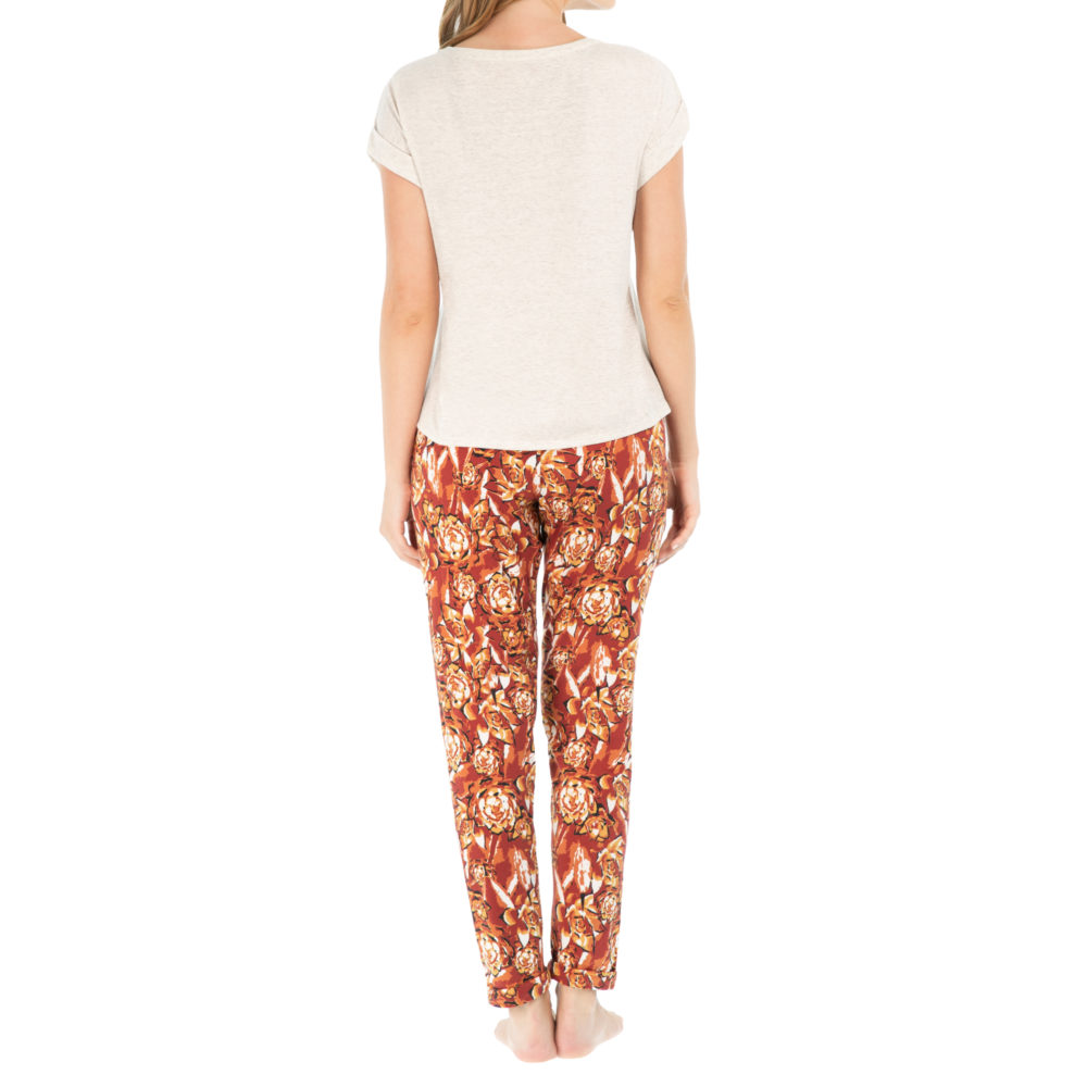 SET PIJAMA MANGA CORTA Y PANTALON ESTAMPADO, EN TELA SUAVE AL TACTO.