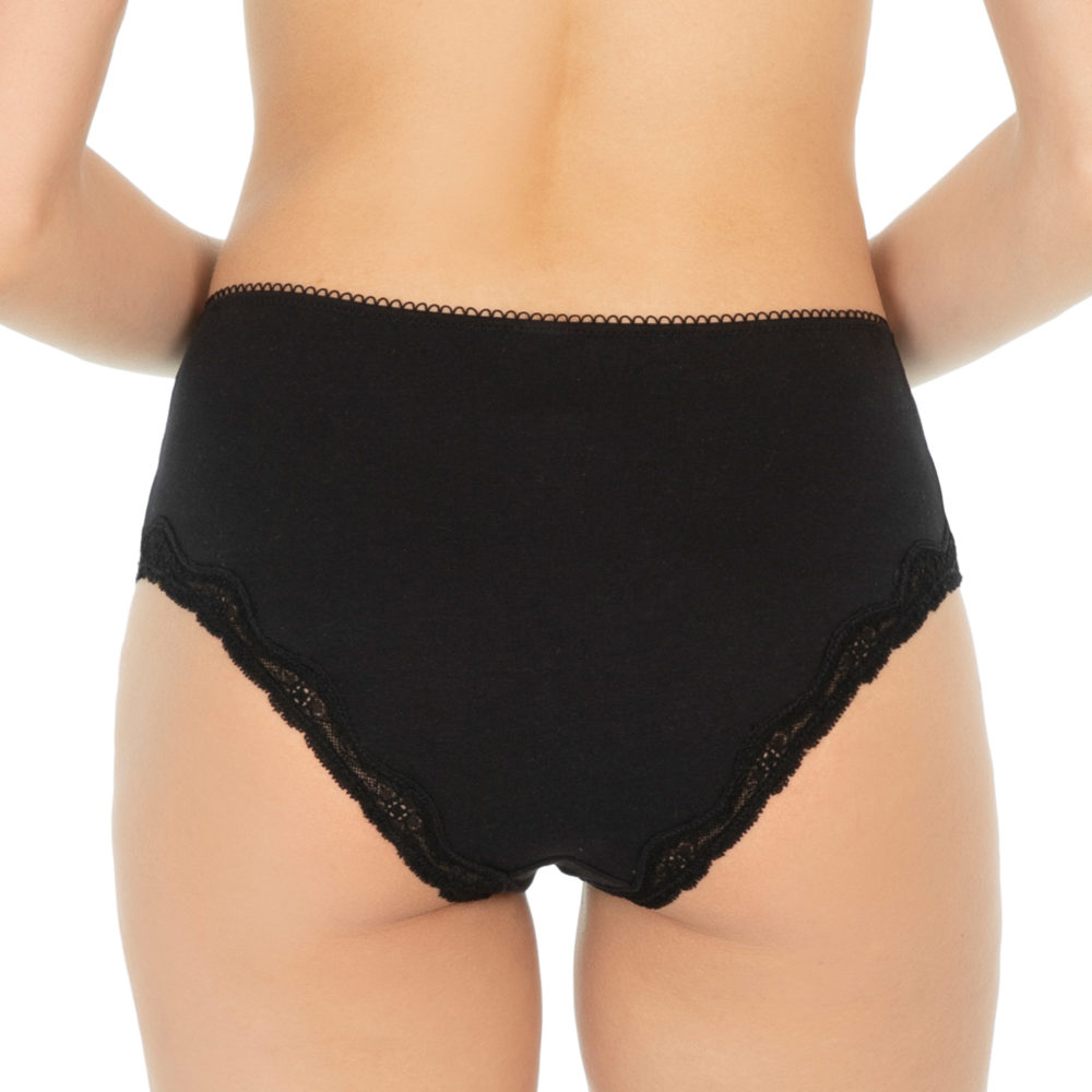 BIKINI DE CINTURA ALTA, CONFORTABLE DE ALGODÓN SUAVE, CON DETALLE DE ENCAJE EN CINTURA.